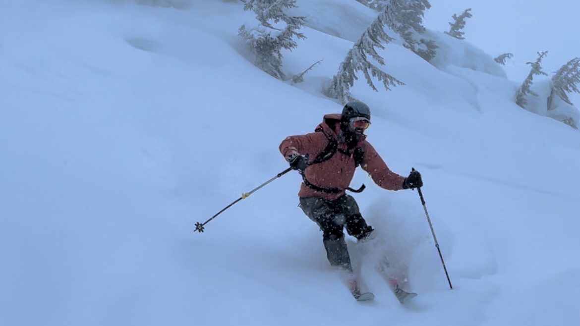 After cliffs were dropped and spruce were popped, we reapplied our skins and started back up for another lap in the trees. As we started down the trail to the uptrack, we ran into friends and we agreed to take a lap together. This time, we climbed to just shy of 2,000 feet. The snow seemed even better on the second lap, it seemed like it was the deepest I had skied in a few weeks. We enjoyed the rolling minigolf that is the Tincan Trees, and I even took it over the handlebars on a small cliff and found my right ski two turns beneath me upon wiping my goggles. There is something so beautiful of the humbling act of skiing powder on one ski.