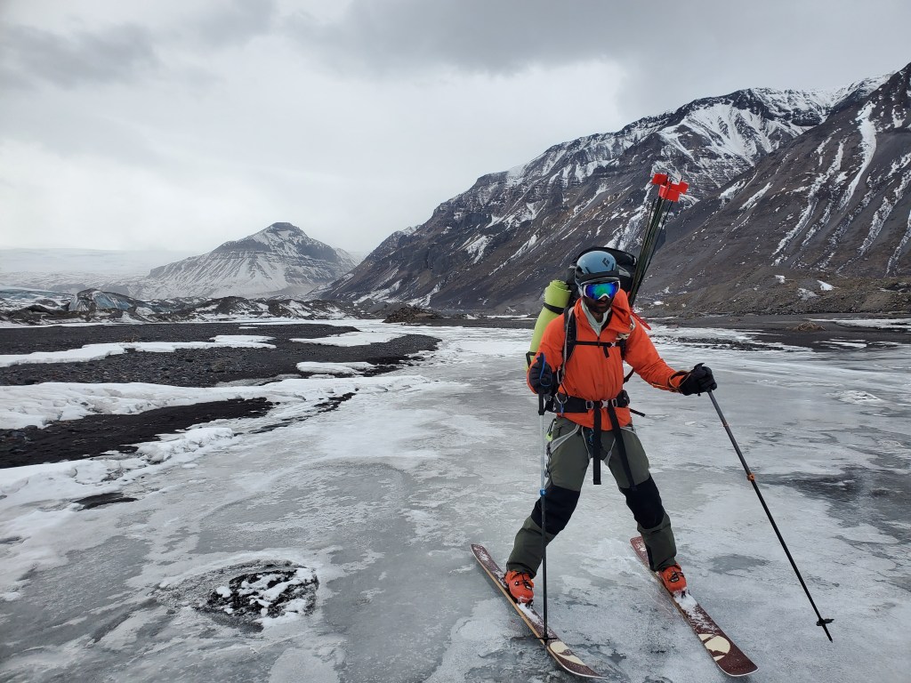 With katabatics ripping down the river right off of Sanford, we decided to put the skis on without skins and see how well we could skate across the river ice. The winds blew us down the ice at a speed teetering on scary, but it was a relief to utilize an energy source to move us instead of continuing to walk.
