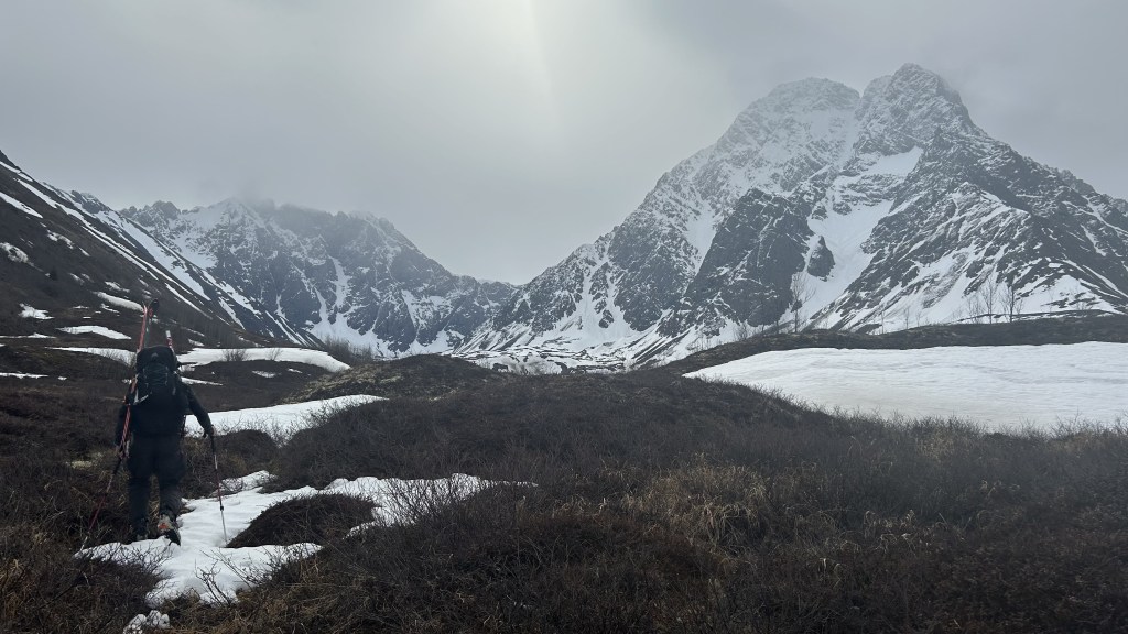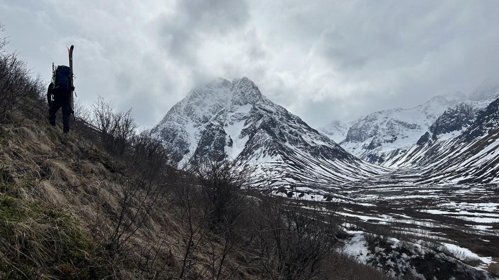 When the day came about, we threw our 80lbs packs on our backs and began the long walk through the woods. Low hanging branches were trying to steal our skis every step, but eventually the brush began to thin out. Soon enough we were in Ram Valley where the city we had just come from became only a memory. To be so close to Anchorage but so isolated is a special feeling, and something I love about the western Chugach.