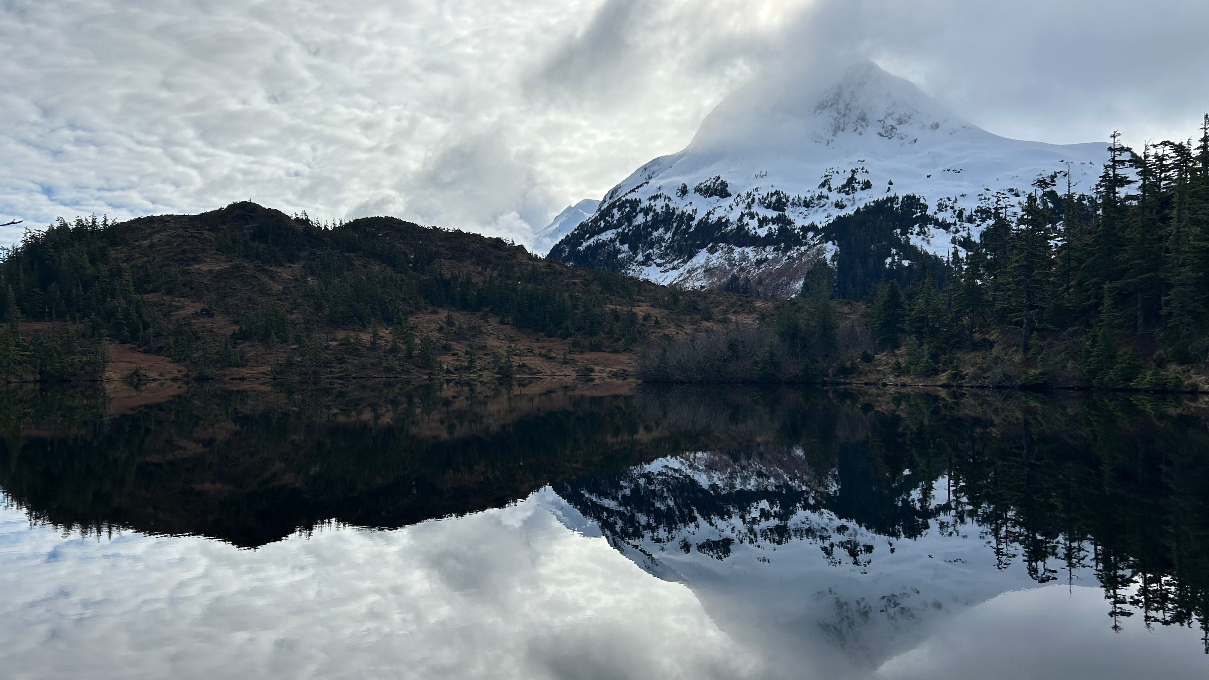 Following a pleasant night of typical Cordova showers, I awoke and began to get ready to ski either Eccles or Heney peak. I started down the road with my ski gear in-tow and on my way to town was passed by two friends who provided endless help for my travels. They were the ones who got me on the SERVS course, so when they passed they offered a ride. I happily took the offer and had them drop me off at The Little Cordova Bakery for their famous biscuits and gravy and coffee. After that, I began walking to the reservoir where I would have multiple miles of slogging through bog with Xtra Tuffs before I would transition to ski boots. On my way through town, everyone I passed asked what I was doing as they were not used to seeing people walking with skis on their back miles through a town that hadn’t seen snow at sea level for many weeks. After nearly a dozen interactions explaining where I was going, one gentleman was kind enough to offer me ride to the reservoir. He used this as an excuse to figure out what the hell I was doing with skis on my back in downtown Cordova, and after I explained, I was pleased to find out he was an avid backcountry skier who spent his winters skiing in California. He dropped me off at the base of the reservoir and I began my hike to snow.