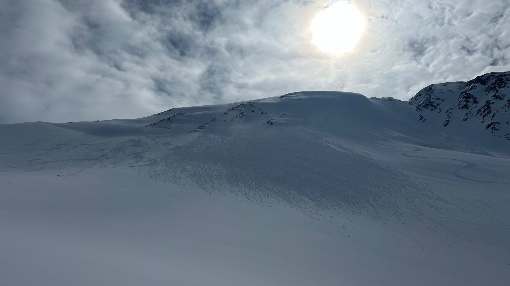By the time I reached the bottom of the run, clouds had moved back in. This led to our decision to work our way back out to the car. With mellow terrain between us and there, the large group of us party-lapped back to the road and in no time we were having the Hungry Deckhand at Girdwood Brewing Company, a classic after any day in Turnagain Pass.
