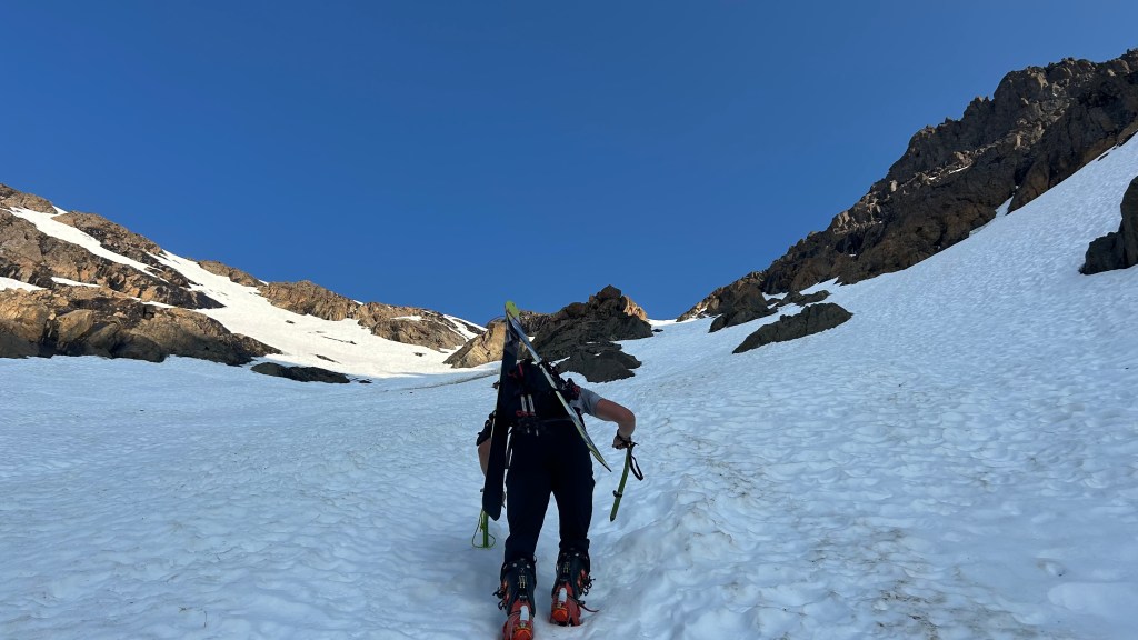 While I was happy to check the pinner out, I left frustrated that I had not gotten a shot at the namesake couloir. I knew I would be heading back soon with clearer weather in the forecast, and because the S couloir holds deep into the summer, I was not too concerned about the timeliness of my return.