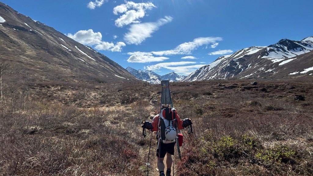 With a summer between the time of writing and the trip itself, I cannot for the life of me recall what exactly spurred the idea to head out to Eagle and Symphony Lakes for May skiing. What I can assure you is that my partner, Andrew, and I are two of the countless fanatical skiers within Anchorage that will go to extreme lengths to find snow as the seasons begin to shift towards warmer and longer days. Andrew had spent plenty of summer nights in the upper reaches of the South Fork valley, while I had a newly found infatuation with the valley after countless spring days spent skiing North Bowl and Harp Peak. Between Andrew’s knowledge and my curiosity, we made plans to head up towards Symphony Lake to set up camp to get eyes on some future objectives and enjoy a little skiing along the way.