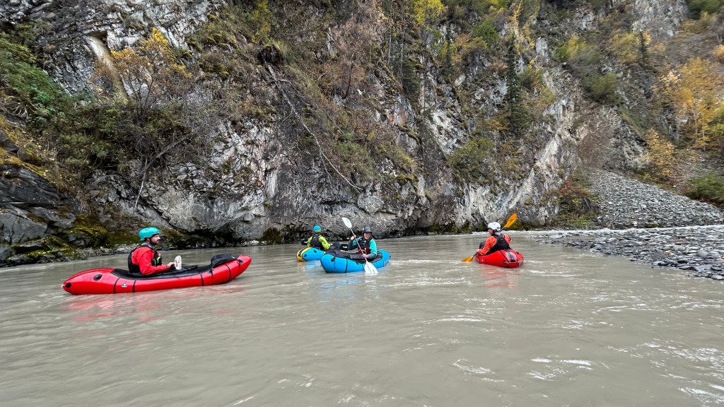 Beginning at the Caribou Creek Parking lot allows for you to comfortably spread out as you inflate your boat and get your gear in order. Floating down Caribou Creek provides a mellow warm-up, but be sure to keep your guard up as there tends to be a lot of wood throughout this short section due to the river braiding out as it confluences with the South Fork of the Matanuska. Shortly after the South Fork confluence, you’ll be treated to a unique perspective as you float directly underneath the steep south face of the Lion’s Head. Luckily for us boaters, the whitewater does not pick up until you are beyond the beautiful geology. As the long right turn underneath Lion’s Head begins to become a left, you’ll hear and see the whitewater picking up.